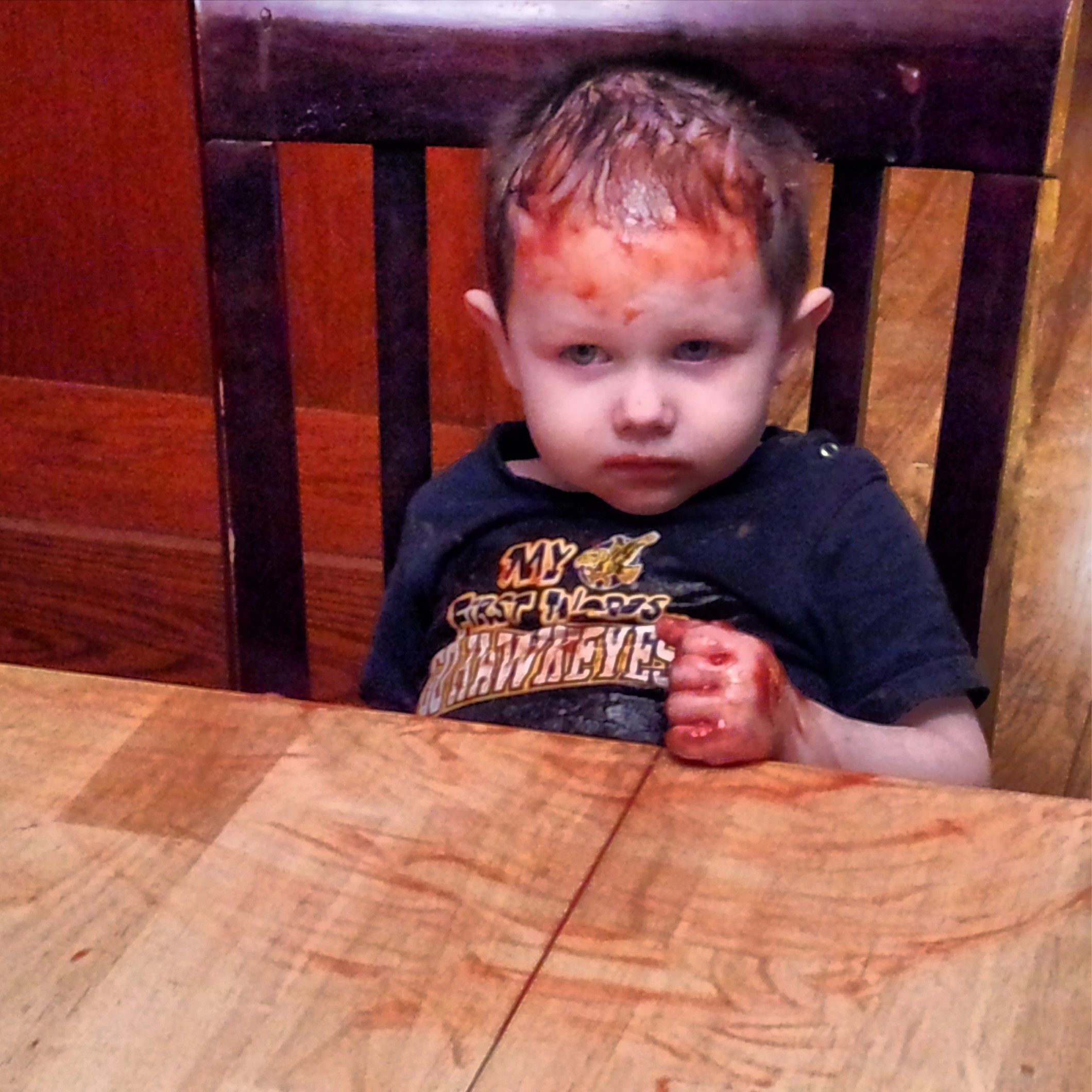 IMG_20130601_193430 Previous Next Published June 11, 2013 at 2120 × 2120 in I’ve got sunshine No, it’s not blood. Someone had fun with the ketchup while Mommy’s back was turned.